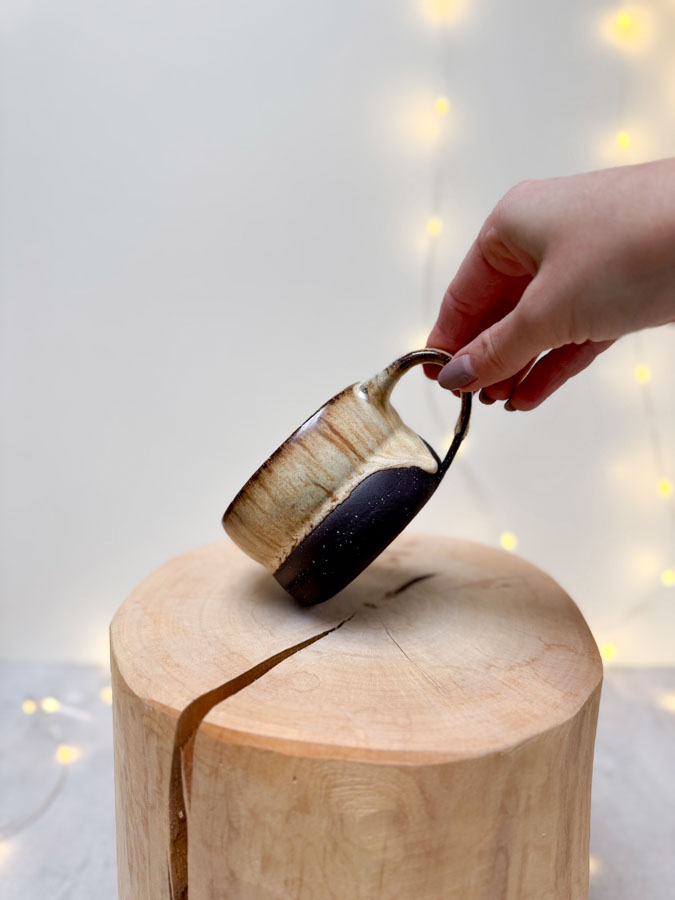 Hrnek z černé hlíny s dark vanilla glazurou.