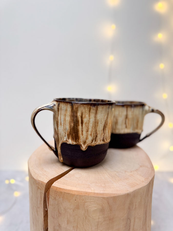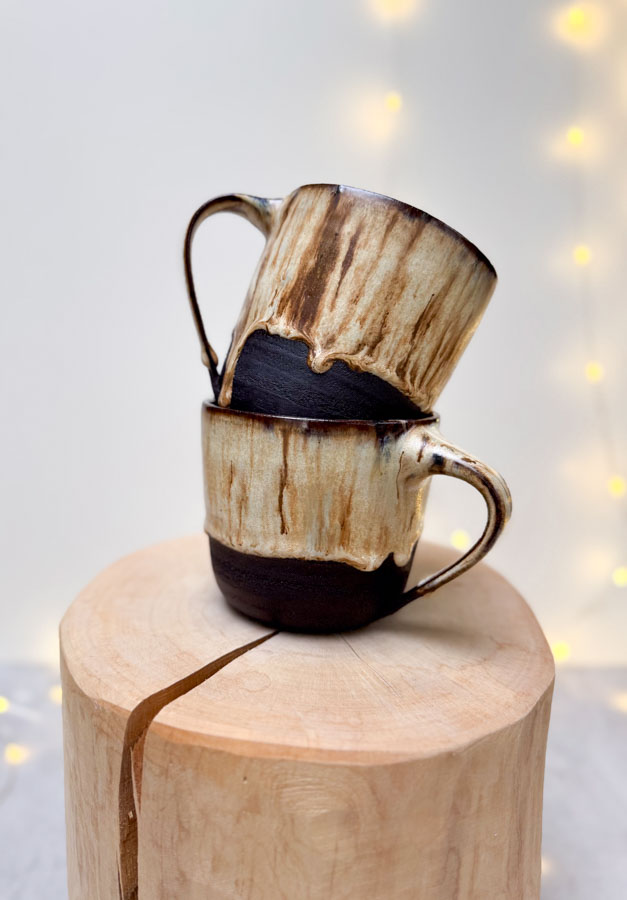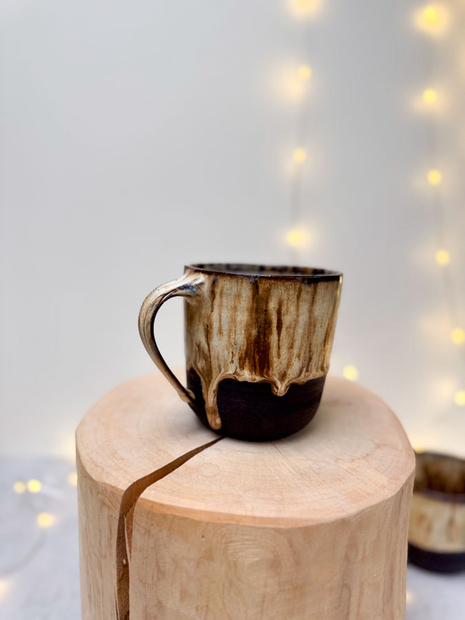 Hrnek z černé hlíny s dark vanilla glazurou.