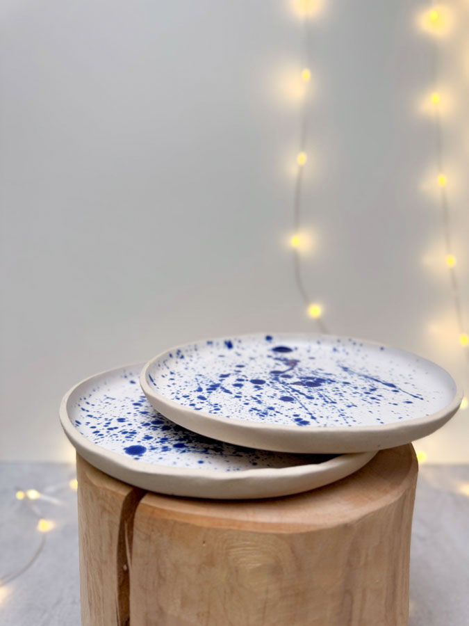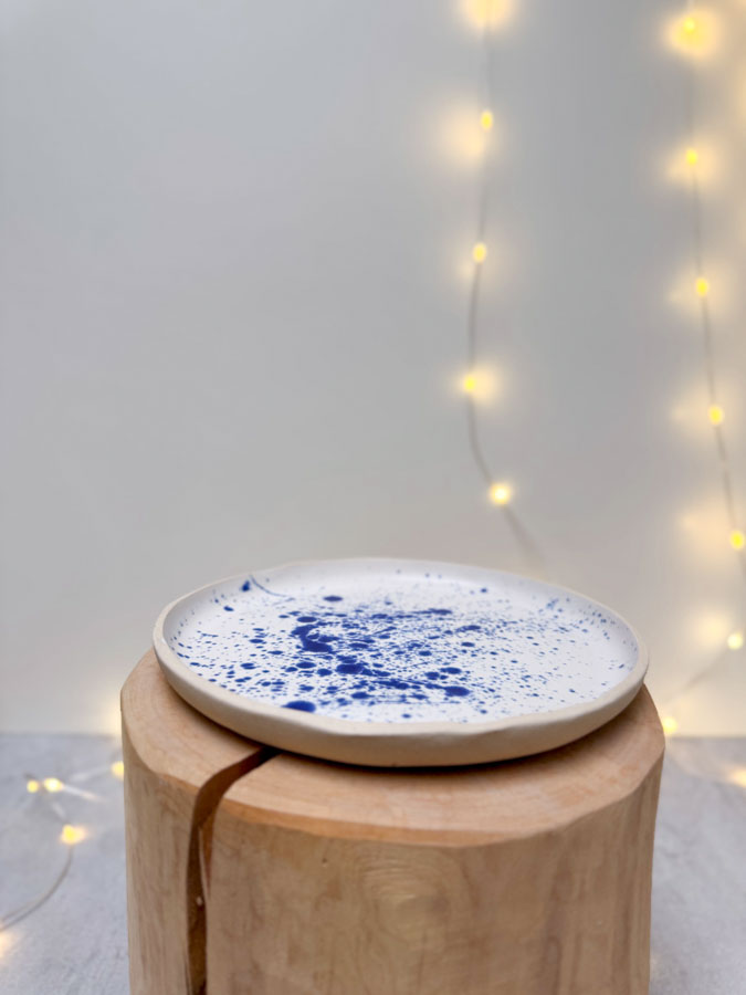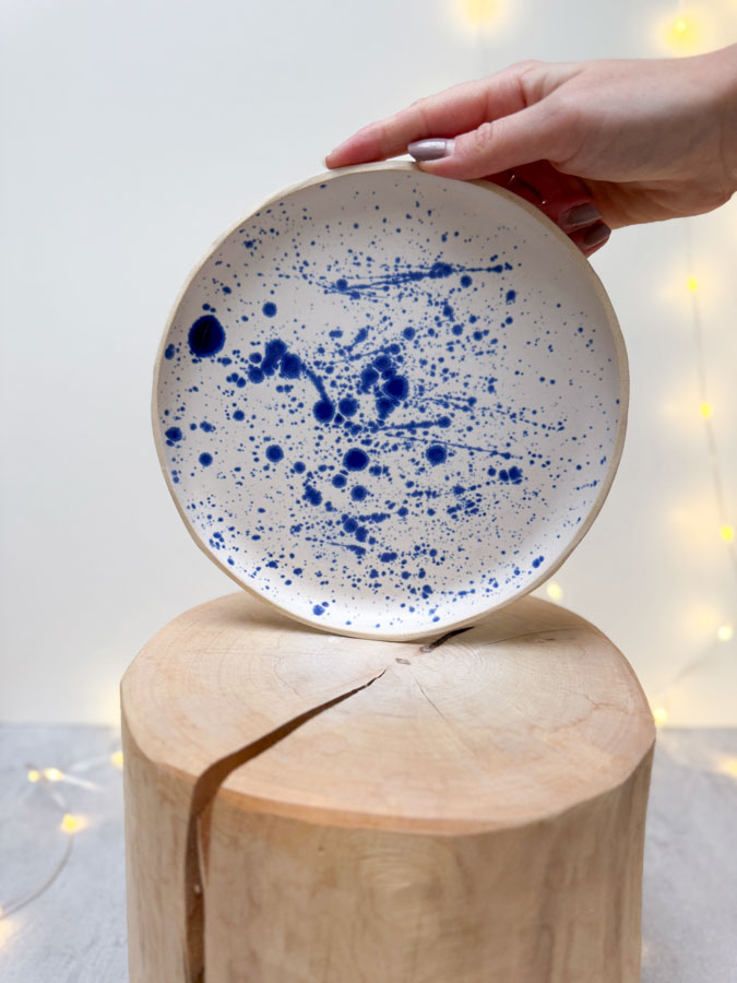 Modelovaný talířek ze světlé hlíny s ink glazurou.