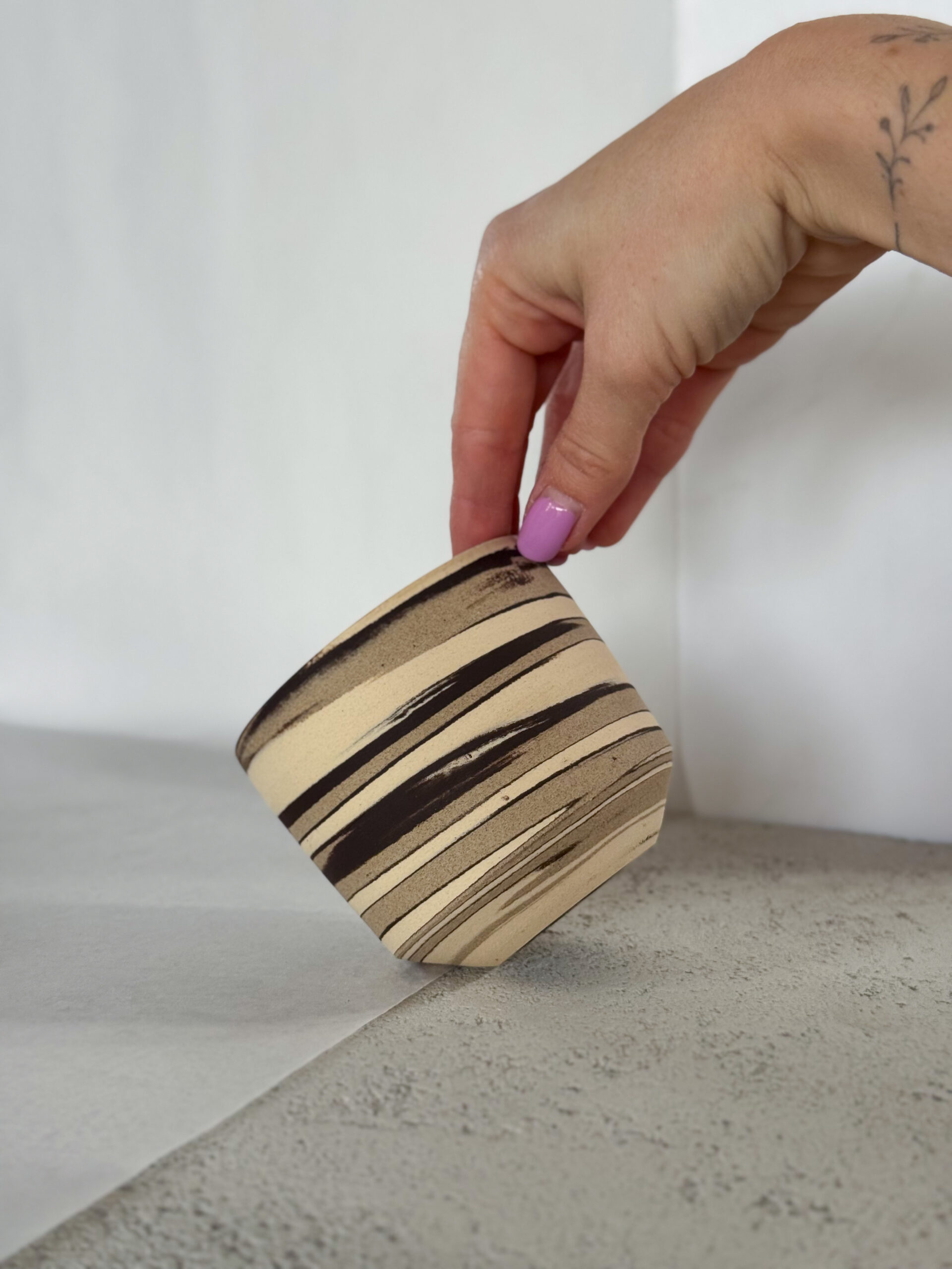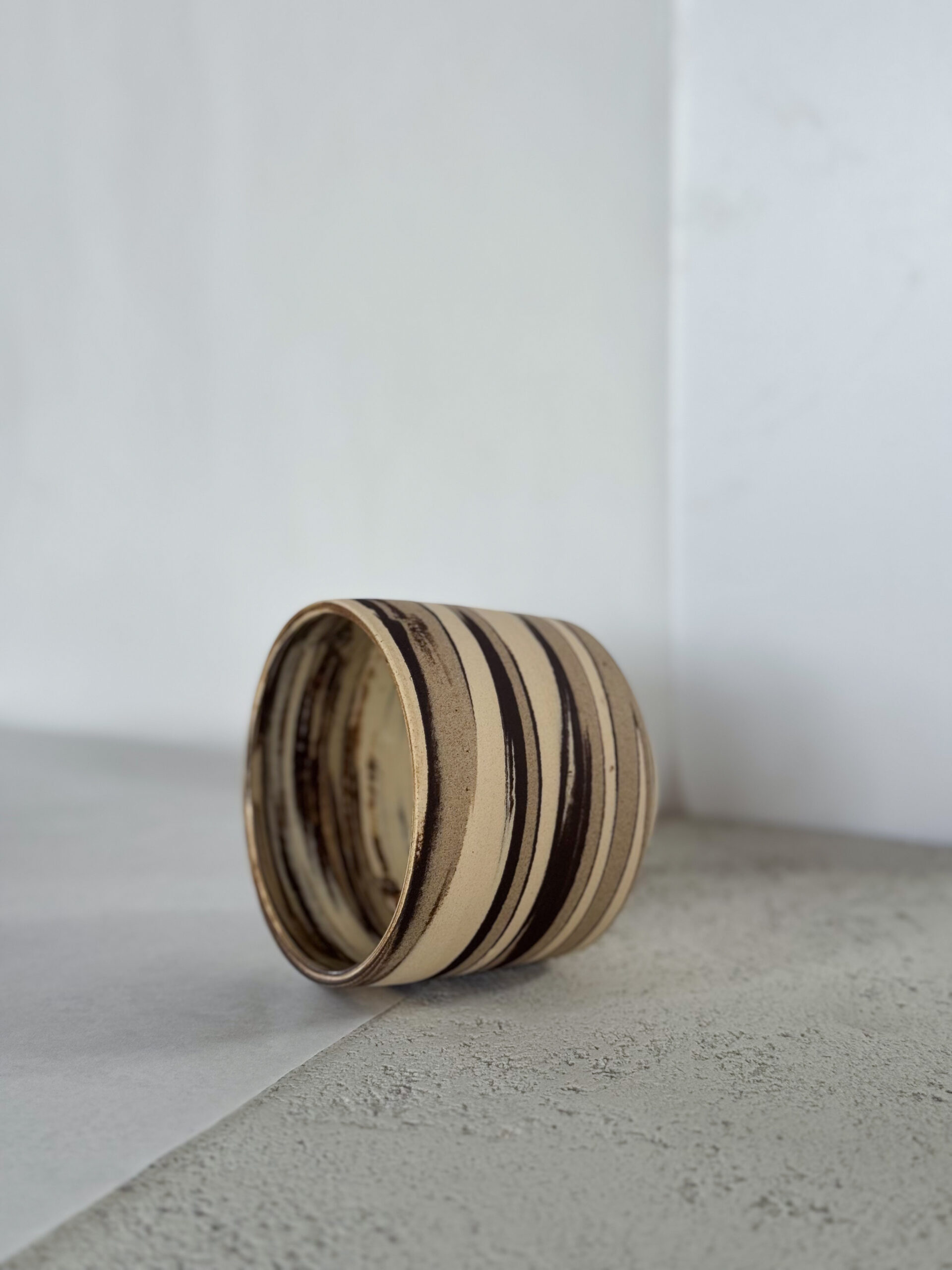 Kalíšek z několika hlín s transparentní glazurou uvnitř.
