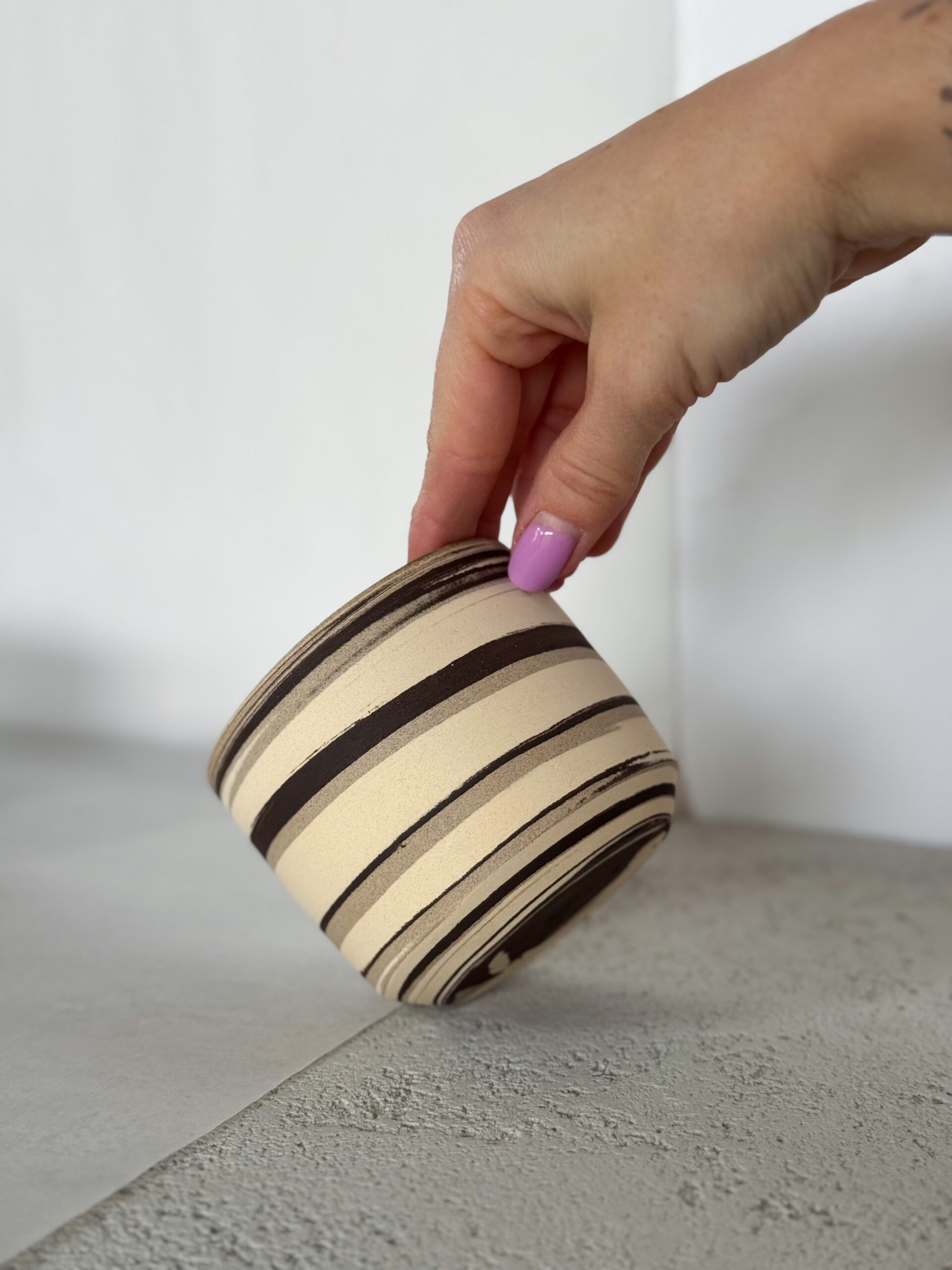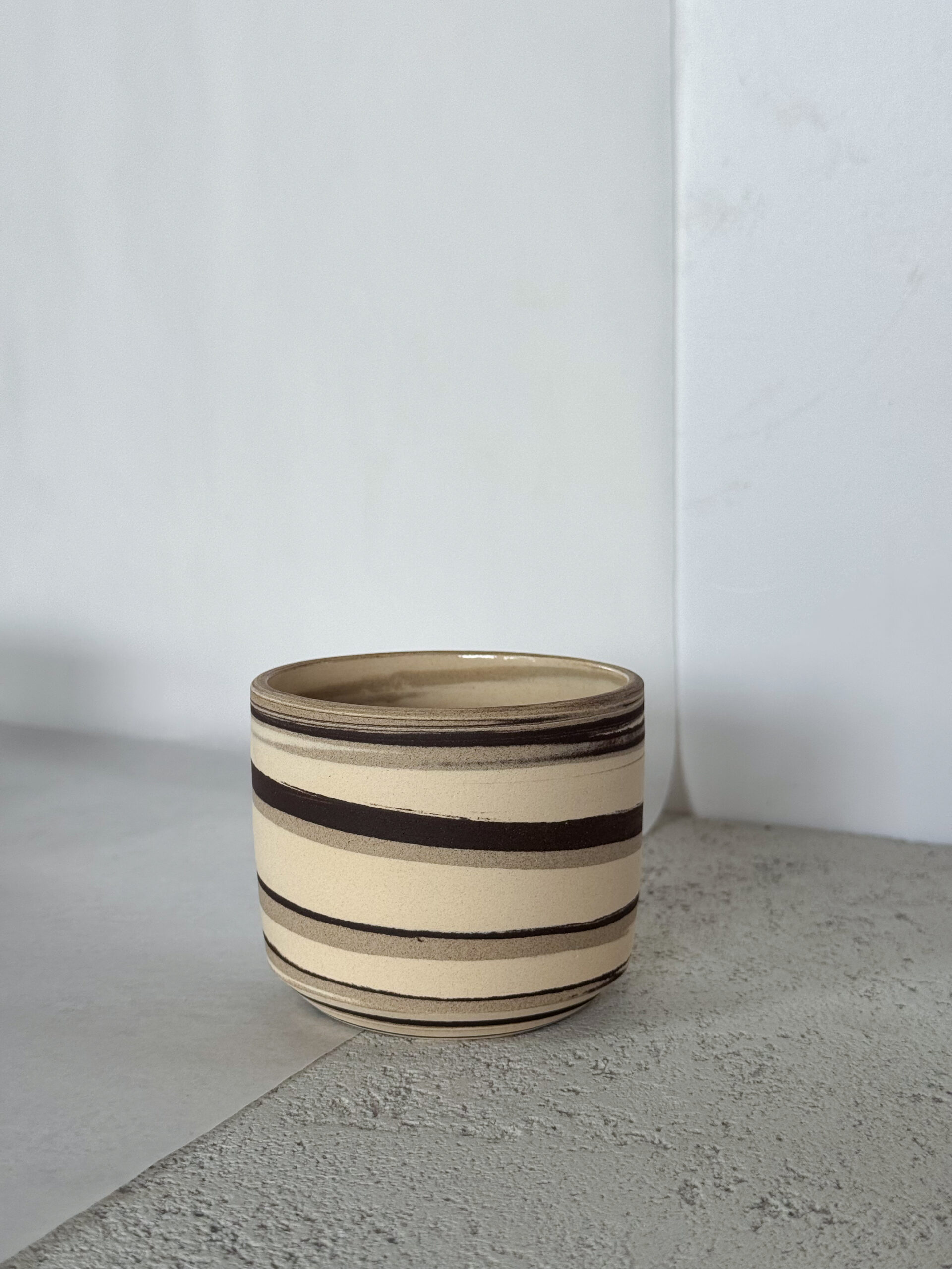 Kalíšek z několika hlín s transparentní glazurou uvnitř.