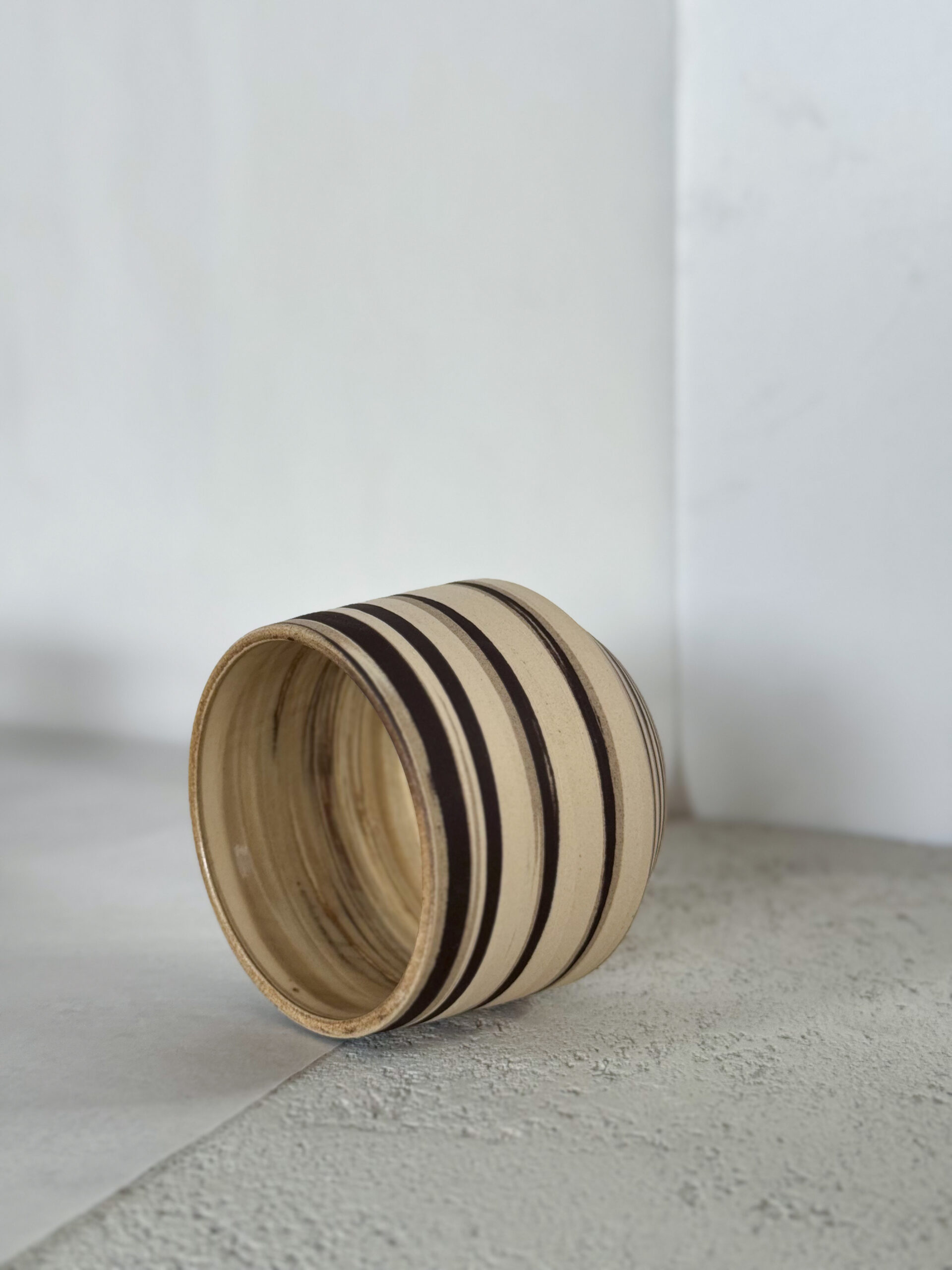 Kalíšek z několika hlín s transparentní glazurou uvnitř.