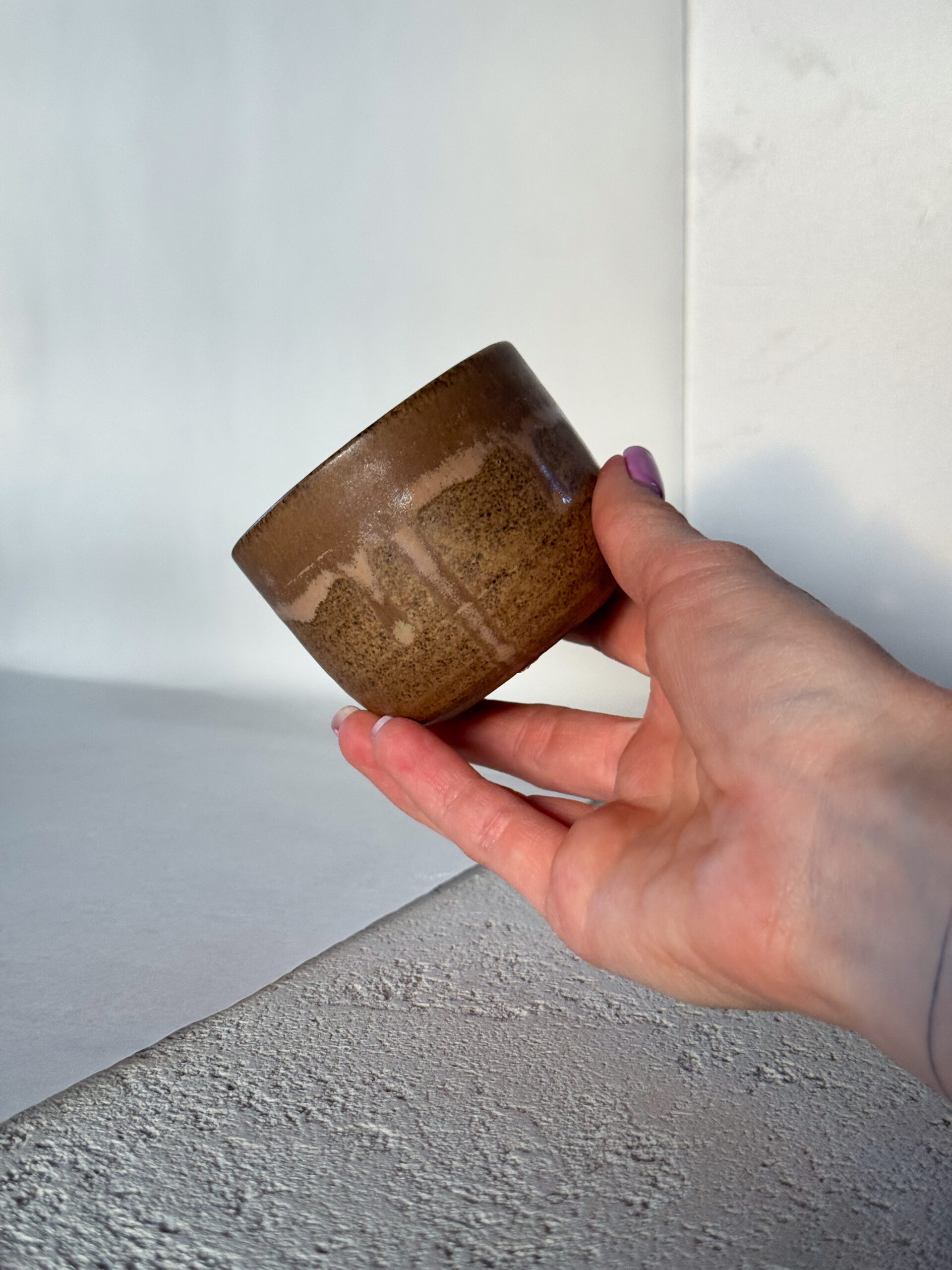 Kalíšek z černé hlíny s matnou glazurou.