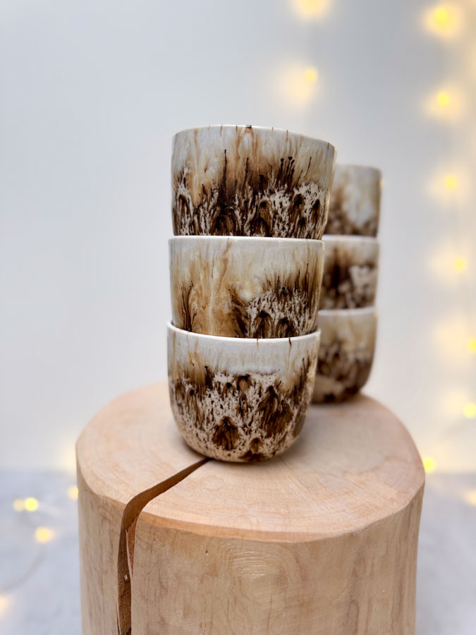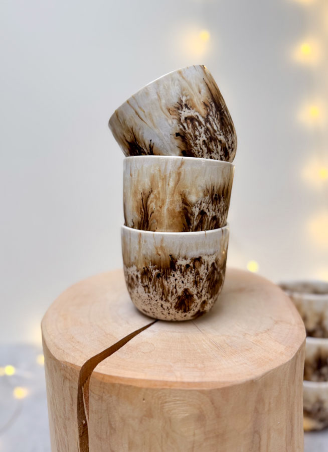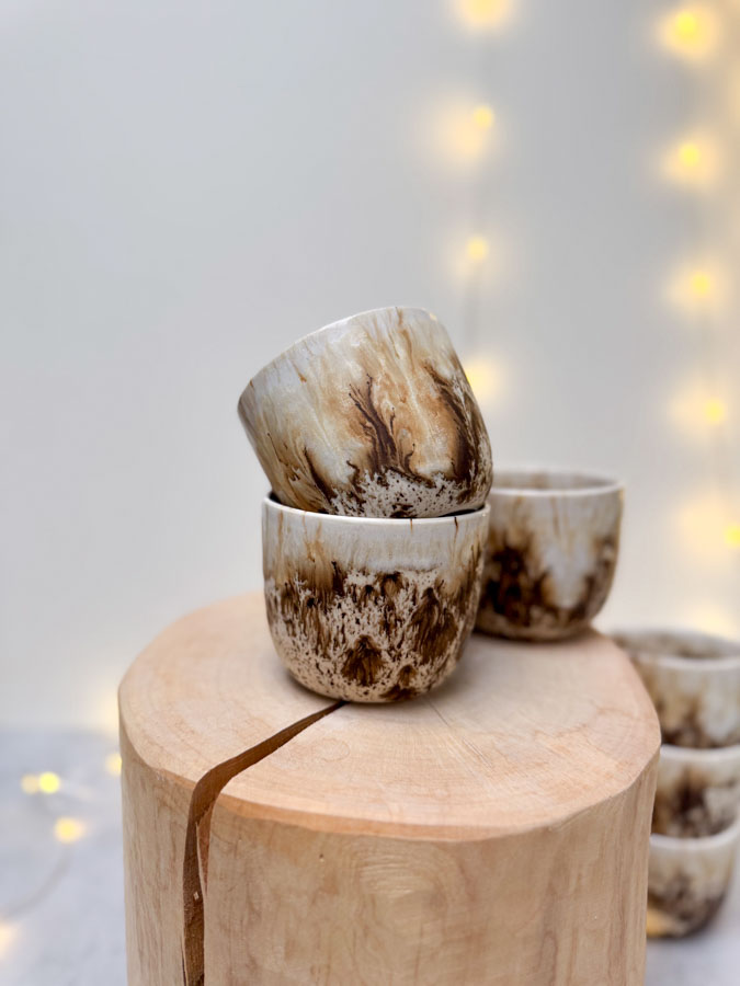 Kalíšek z tečkované hlíny s melted rustic glazurou.