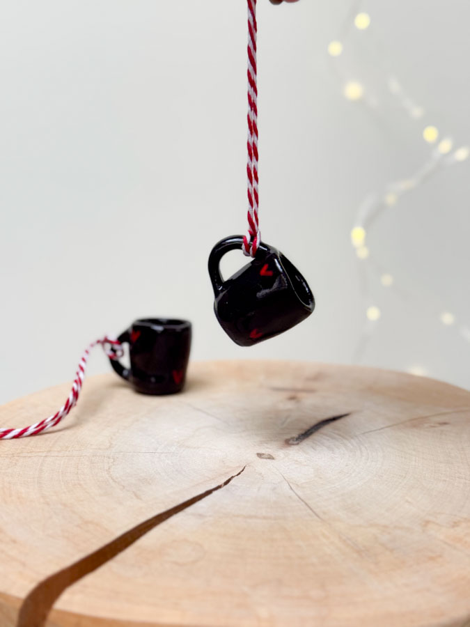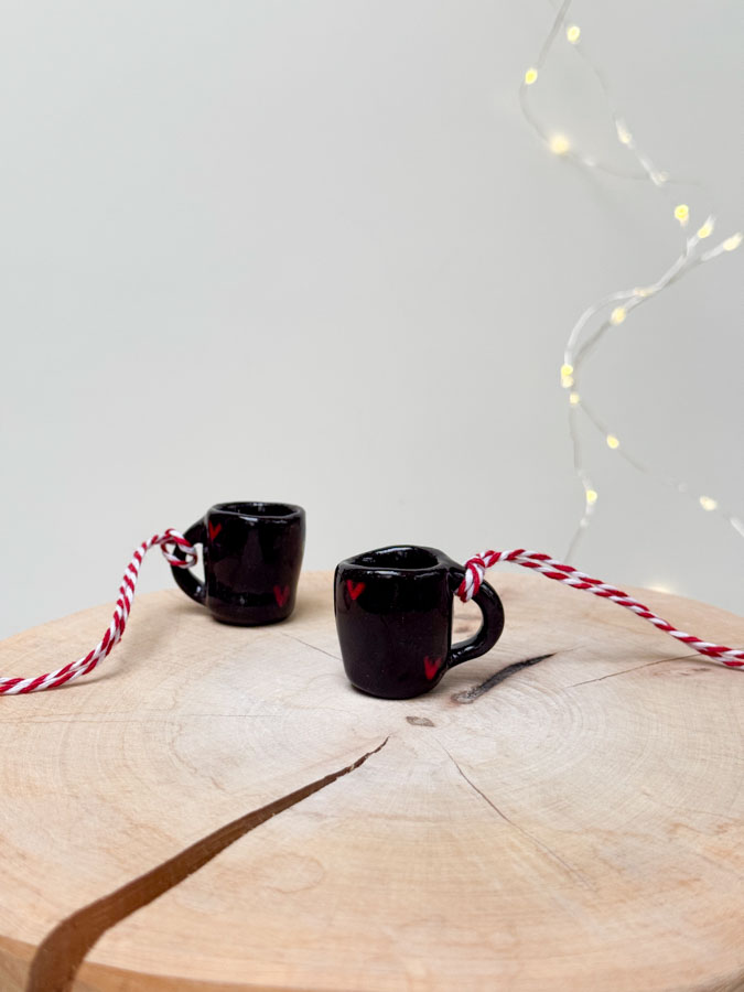 / MINI HRNEČEK ČERNÝ S ČERVENÝMI SRDÍČKY