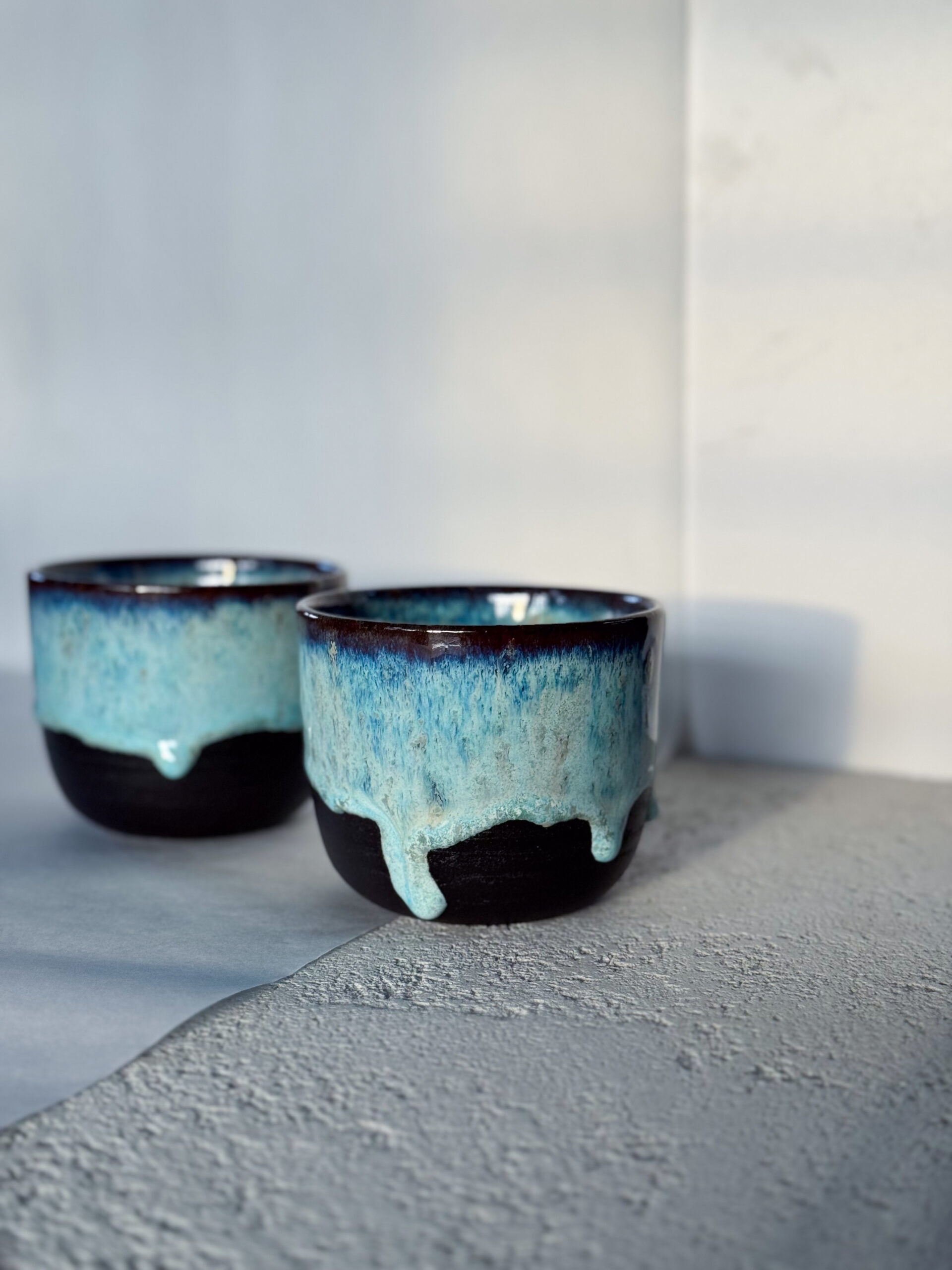 Kalíšek z černé hlíny se sea salt glazurou.